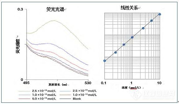 �ψD��ʾ��Blank����ˮ���酢�գ������`���ȵęz�yʾ����ʹ��F-7100 �əz�y����1��10-13mol/L����ƤĦ���� �����ğɹ��ء��ľ��������D��֪����ʹ�ڳ����^��Ҳ�ܫ@�úܺõľ����Pϵ��